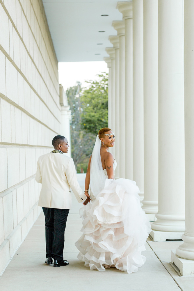 Theresá + Zekeera’s wedding was a super special one for me. They were my first LGBTQ couple and I was super nervous about how I was going to approach it and to be honest what to expect. But when I tell you that their wedding was super emotionally LIT! WOW, you just have to browse through this blog post just to see exactly what I mean. There were a lot of firsts that came with this wedding. One being the fact that I wasn’t able to control the tears from flowing down my face. I don’t think you quite understand. It was so bad, that I had to put my camera down during the “first look” so that I get my entire life together. Theresá had to hand ME over some tissues!! I’m typically the one handing over tissues and not the other way around. lol! This display of black joy, black love, and the most perfect celebration of black queer life was absolutely refreshing!